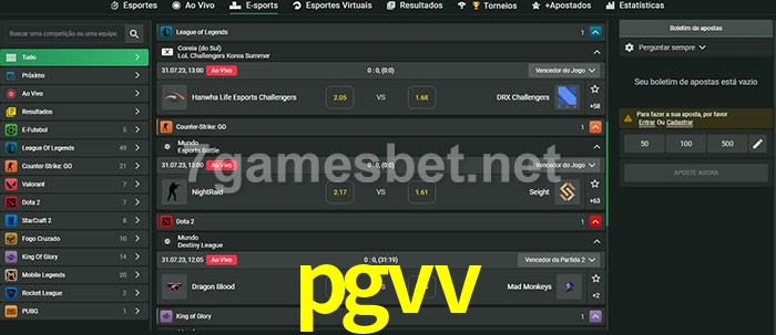 O pgvv oferece uma grande seleção de opções de apostas em e-sports com probabilidades competitivas